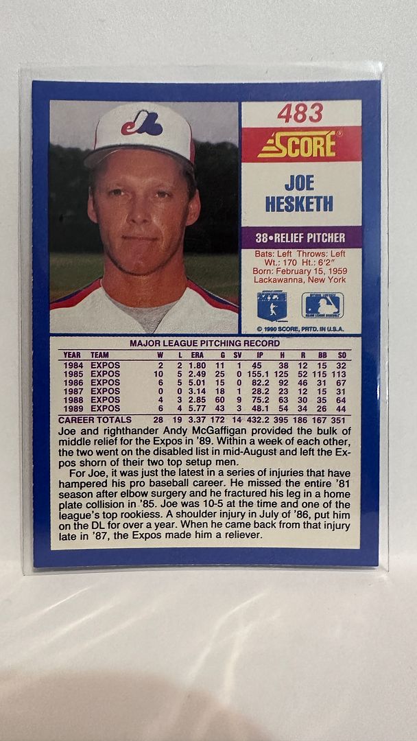 #483 Joe Hesketh Montreal Expos 1990 Score Baseball Card