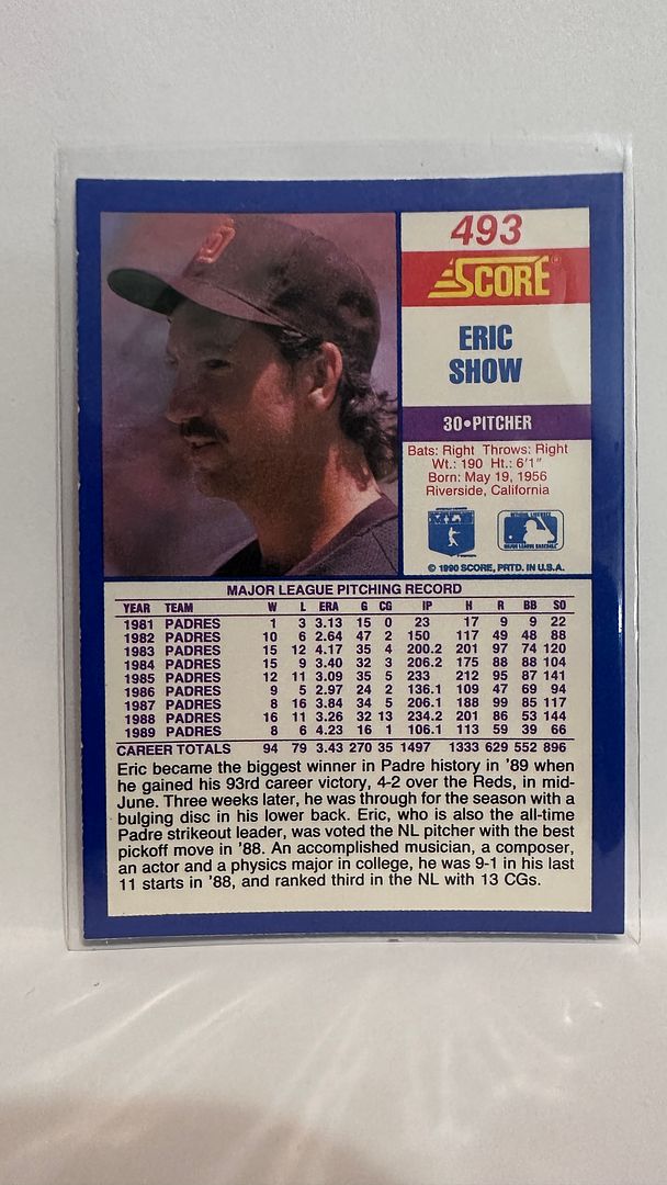 #493 Eric Show San Diego Padres 1990 Score Baseball Card