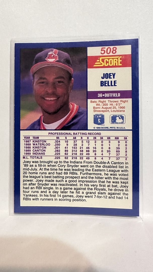 #508 Joey Belle Cleveland Indians 1990 Score Baseball Card