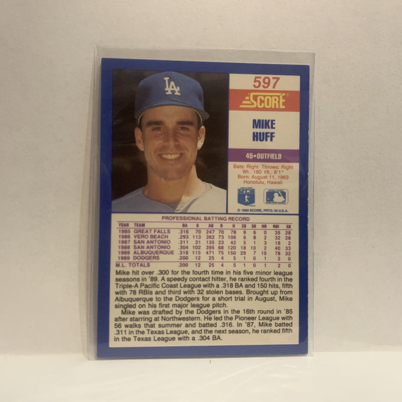 #597 Mike Huff Rookie Los Angeles Dodgers 1990 Score Baseball Card HE
