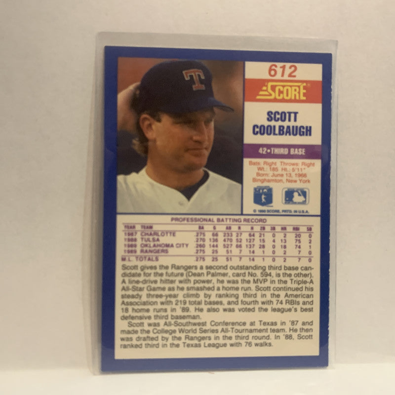 #612 Scott Coolbaugh Rookie Texas Rangers 1990 Score Baseball Card HE