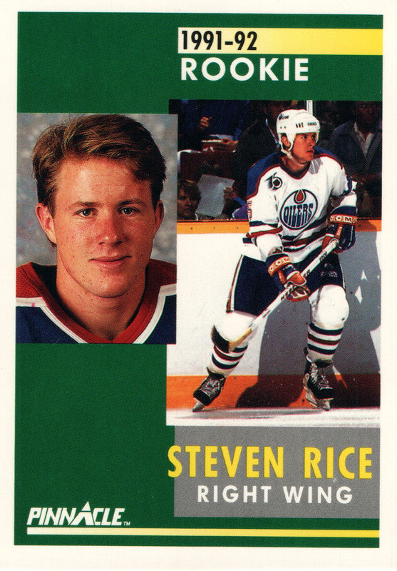 #334 Steven Rice Rookie Edmonton Oilers 1991-92 Pinnacle Hockey Card OV