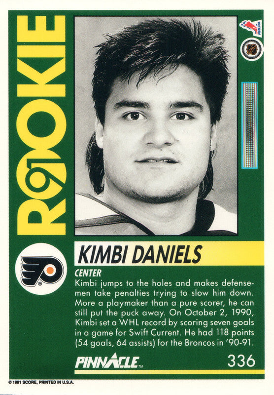 #336 Kimbi Daniels Rookie Philadelphia Flyers 1991-92 Pinnacle Hockey Card OV