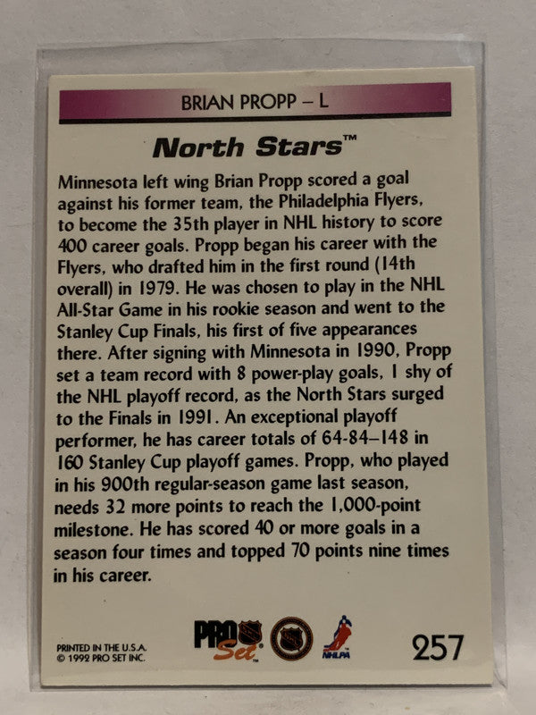 #257 Brain Propp 400th Goal Minnesota North Stars 1991-92 Pro Set Hockey Card