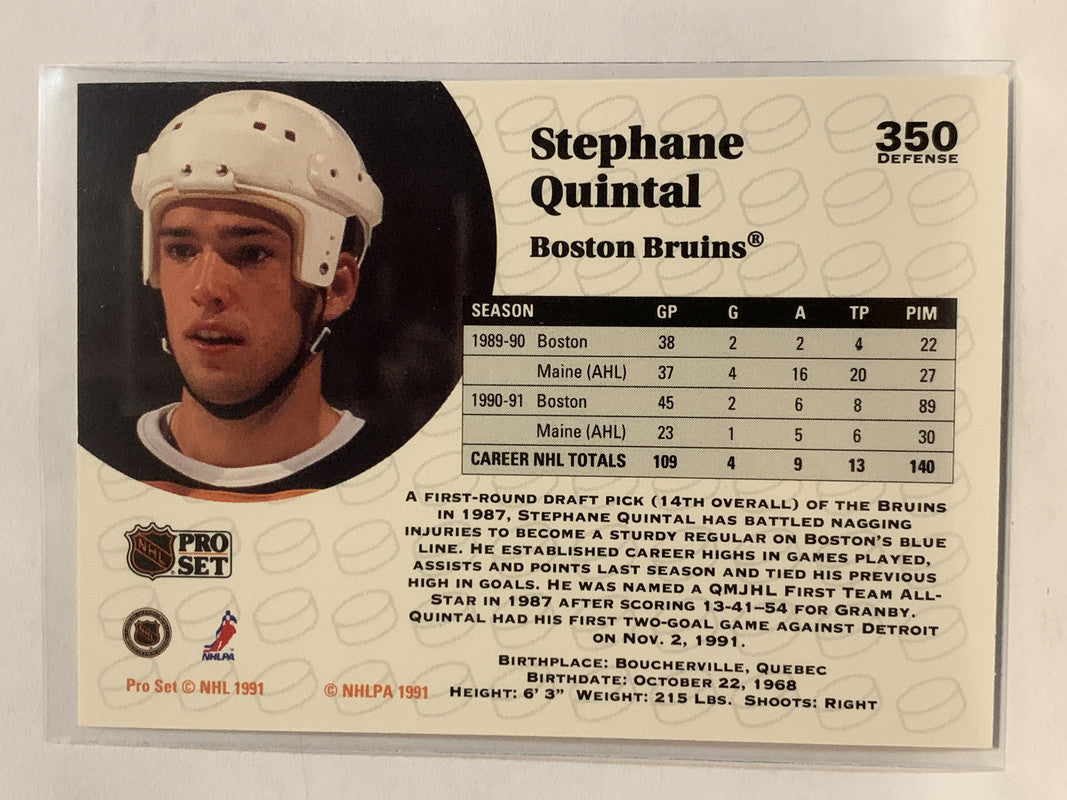 #350 Stephane Quintal Boston Bruins 1991-92 Pro Set Hockey Card