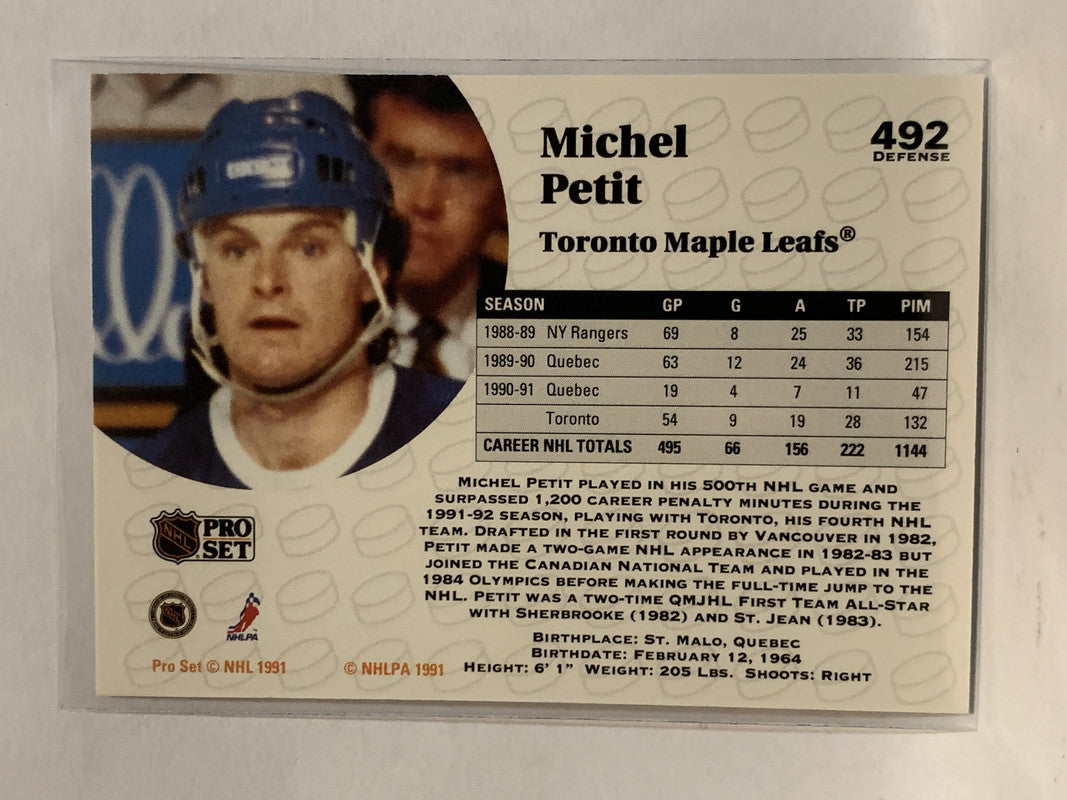 #492 Michel Petit Toronto Maple Leafs 1991-92 Pro Set Hockey Card