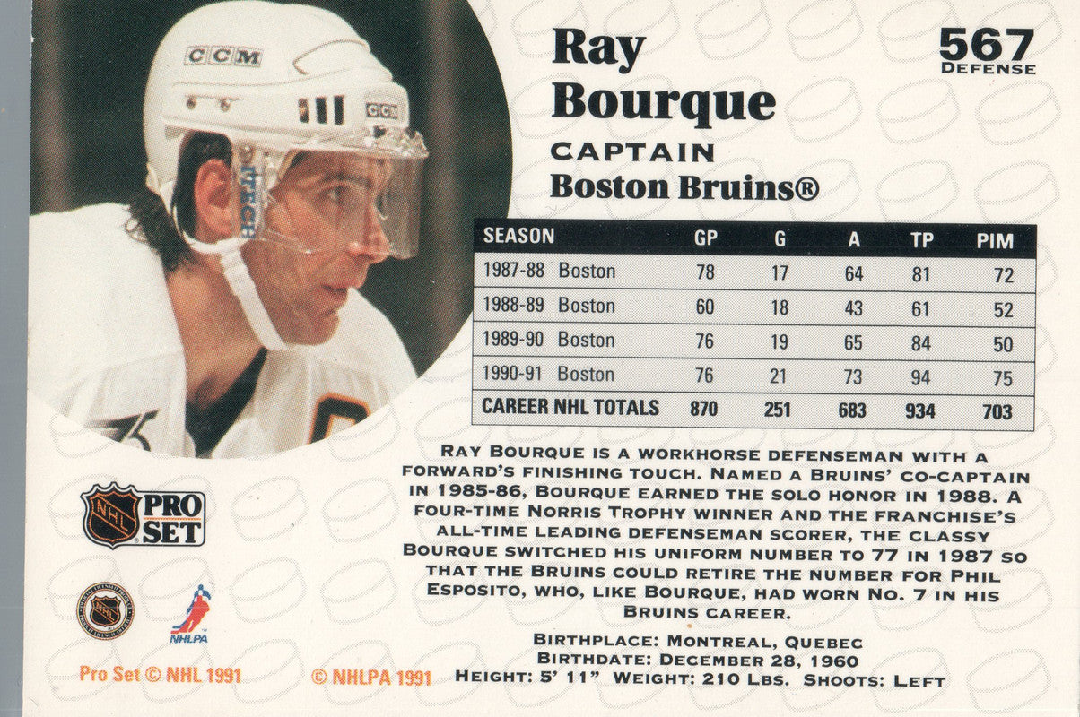 #567 Ray Bourque Boston Bruins 1991-92 Pro Set Hockey Card
