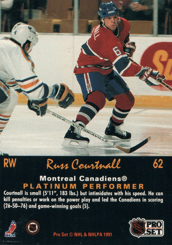 #62 Russ Courtnall Montreal Canadiens 1991-92 Pro Set Hockey Card OZB