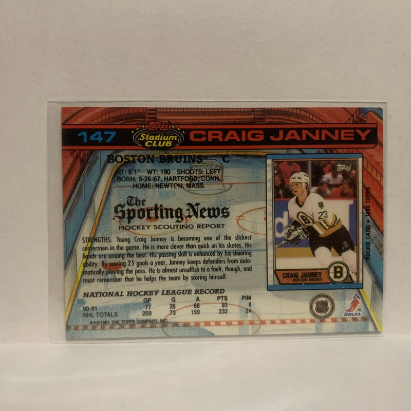 #147 Craig Janney Boston Bruins 1991-92 Topps Stadium Club Hockey Card JW