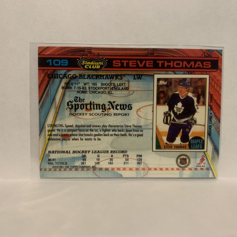 #109 Steve Thomas Chicago Blackhawks 1991-92 Topps Stadium Club Hockey Card LL