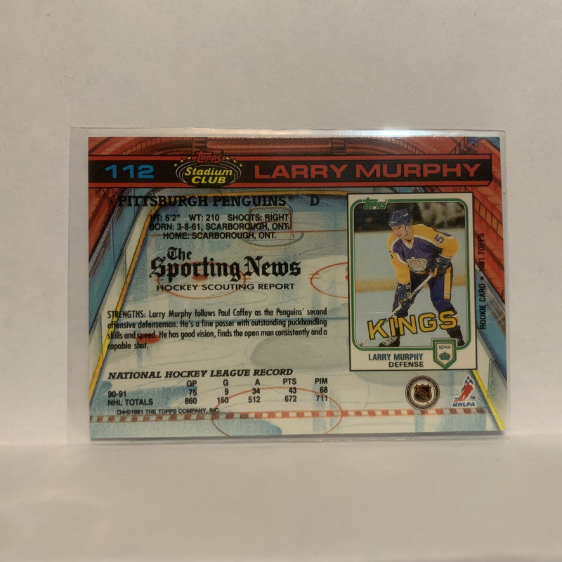 #112 Larry Murphy Pittsburgh Penguins 1991-92 Topps Stadium Club Hockey Card LL