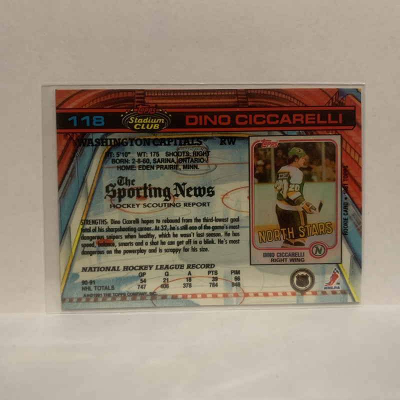 #118 Dino Ciccarelli Washington Capitals 1991-92 Topps Stadium Club Hockey Card JV