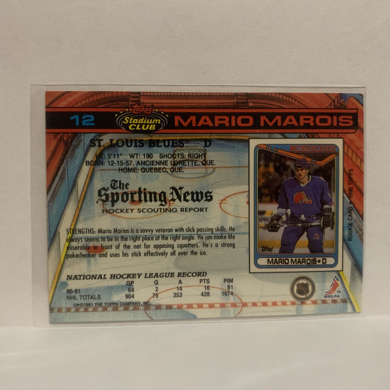 #12 Mario Marois St Louis Blues 1991-92 Topps Stadium Club Hockey Card JY