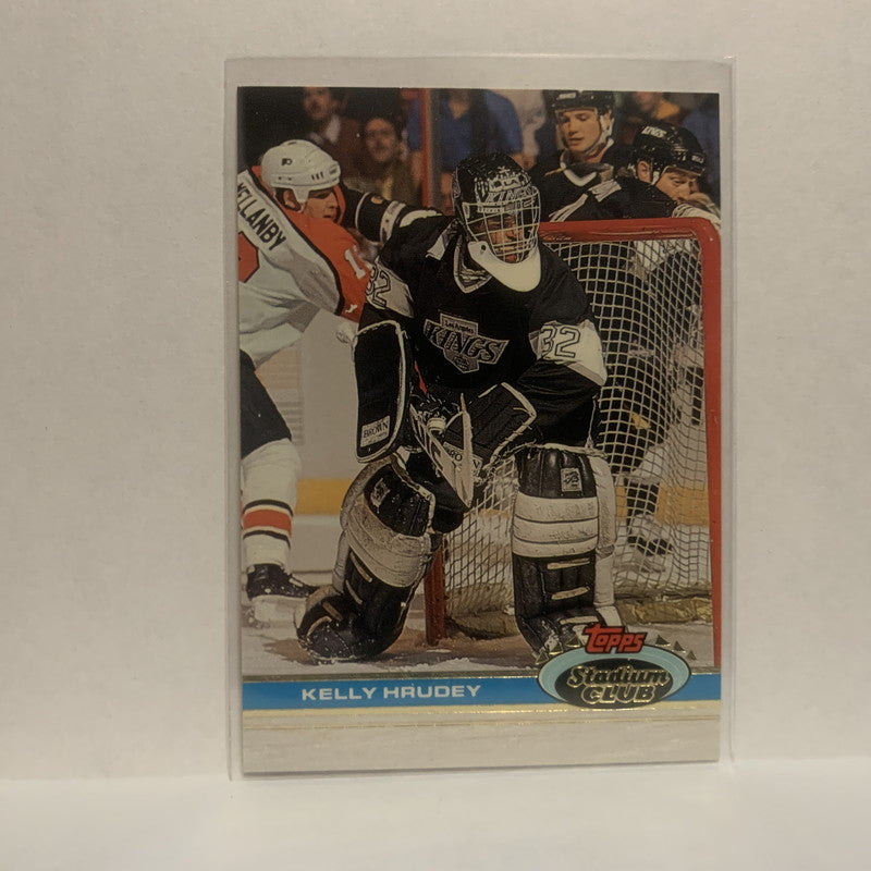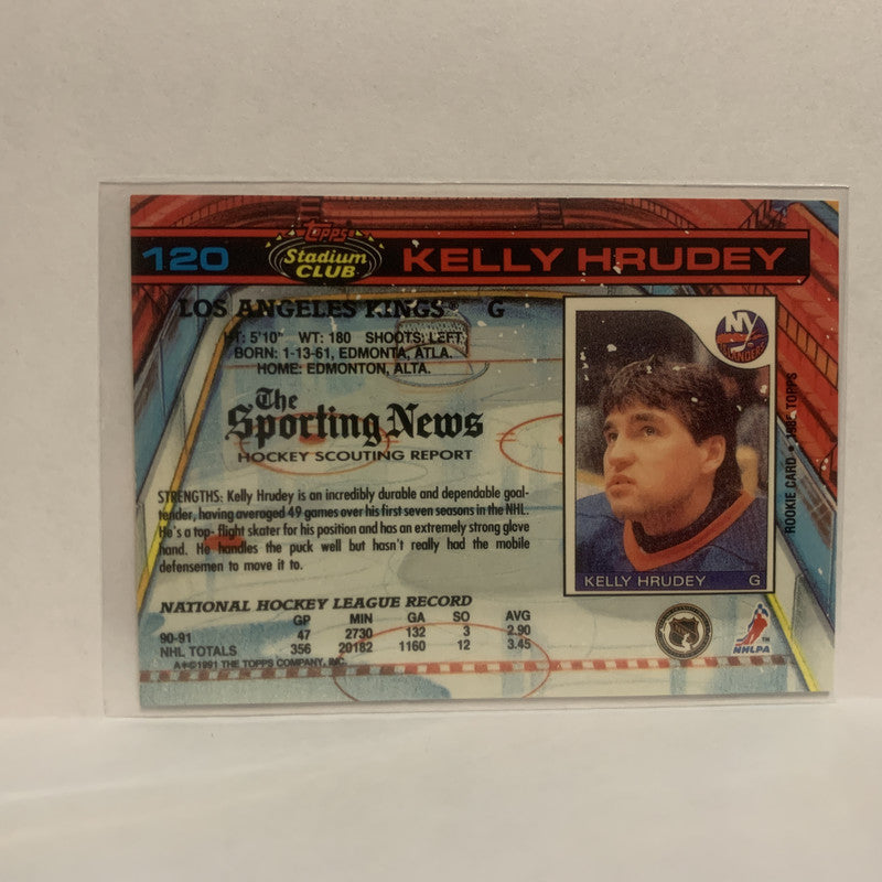 #120 Kelly Hrudey Los Angeles Kings 1991-92 Topps Stadium Club Hockey Card JV
