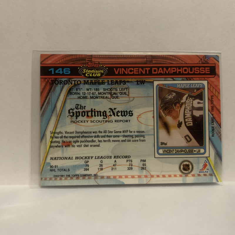 #146 Vincent Damphousse Toronto Maple Leafs 1991-92 Topps Stadium Club Hockey Card JW