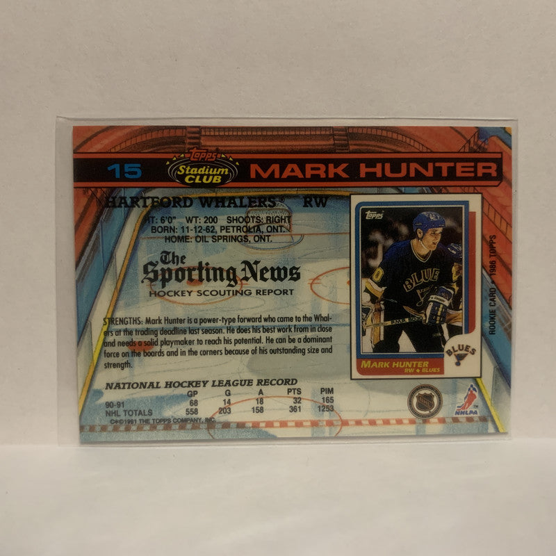 #15 Mark Hunter Hartford Whalers 1991-92 Topps Stadium Club Hockey Card JY