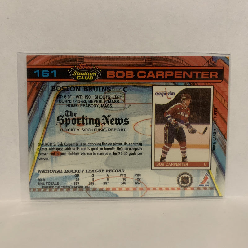 #161 Bob Carpenter Boston Bruins 1991-92 Topps Stadium Club Hockey Card LO