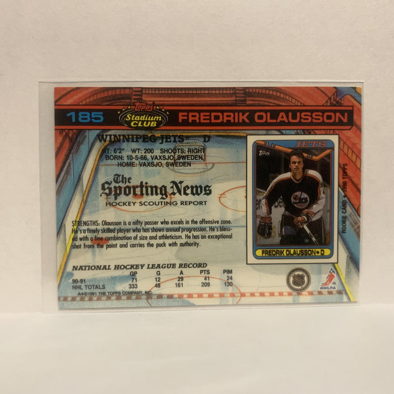 #185 Fredrik Olausson Winnipeg Jets 1991-92 Topps Stadium Club Hockey Card JX