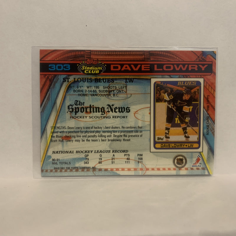 #303 Dave Lowry St Louis Blues 1991-92 Topps Stadium Club Hockey Card LZ4