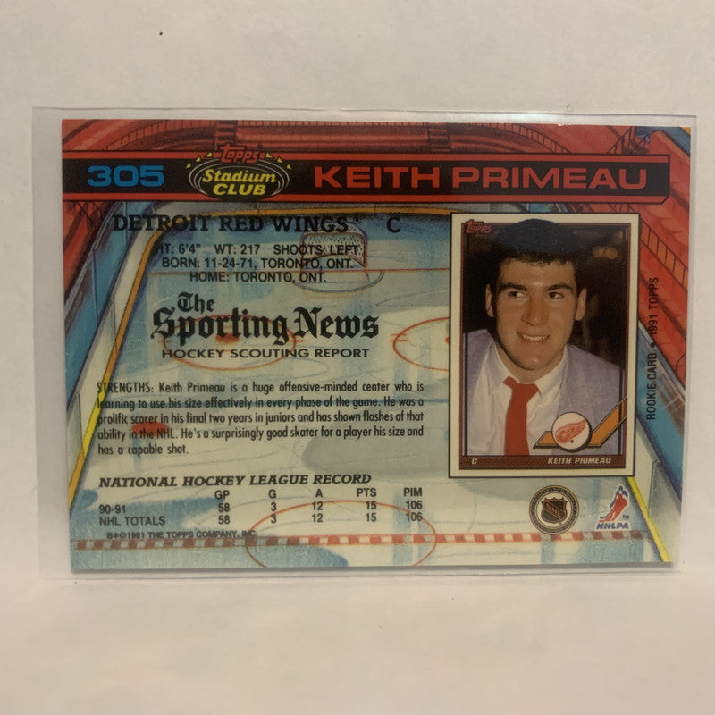 #305 Keith Primeau Detroit Red Wings 1991-92 Topps Stadium Club Hockey Card LZ3