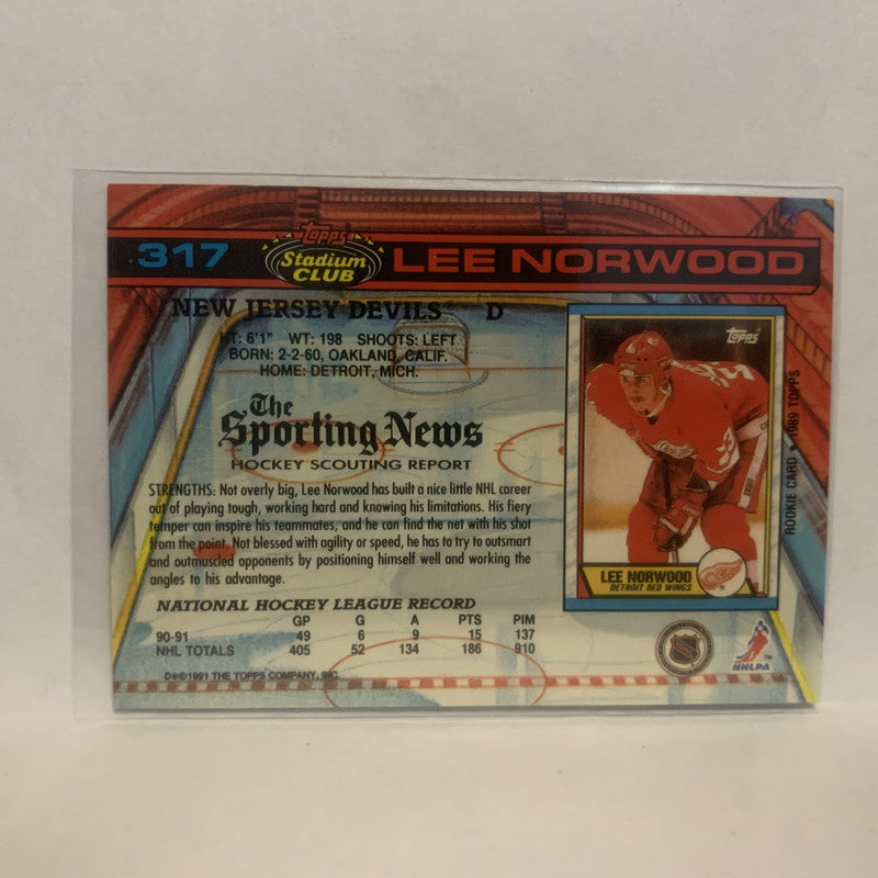 #317 Lee Norwood New Jersey Devils 1991-92 Topps Stadium Club Hockey Card LZ3