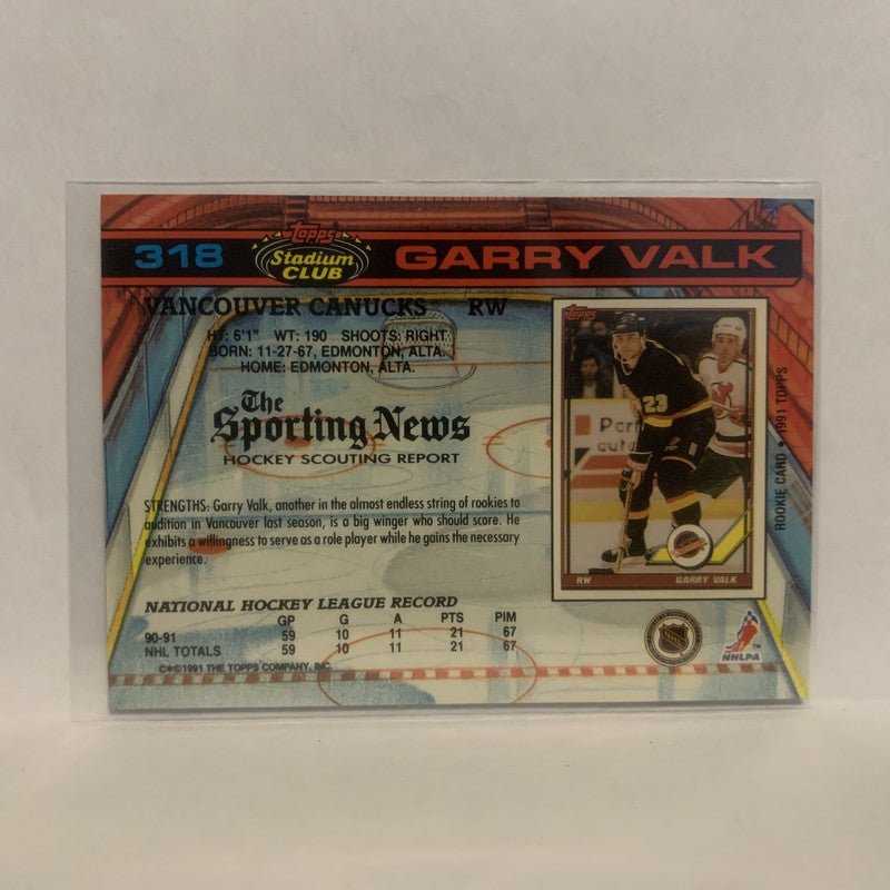 #318 Garry Valk Vancouver Canucks 1991-92 Topps Stadium Club Hockey Card LZ3