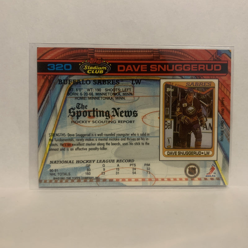 #320 Dave Snuggerud Buffalo Sabres 1991-92 Topps Stadium Club Hockey Card LZ3