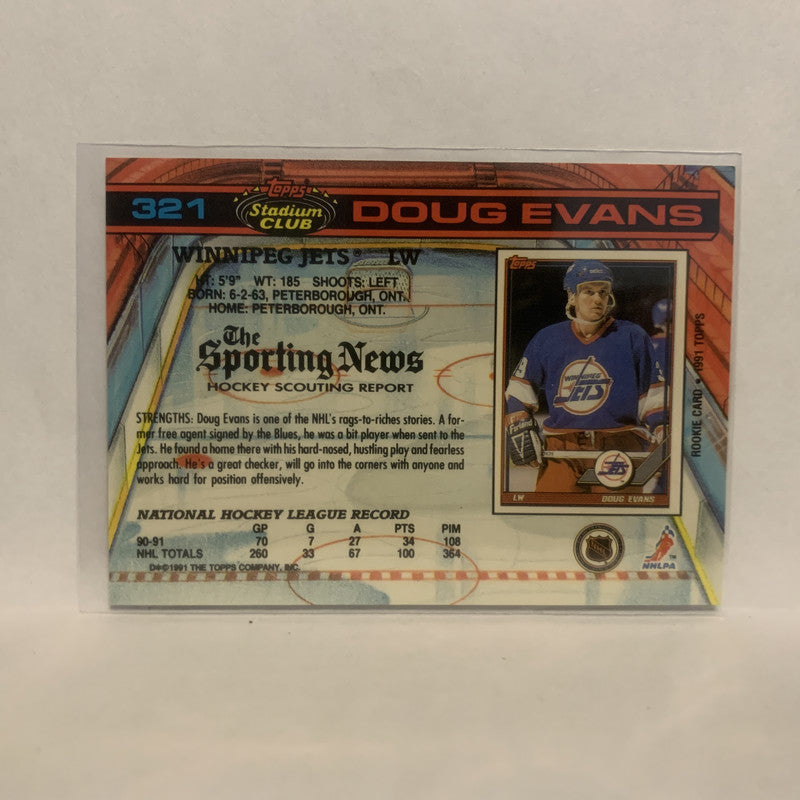 #321 Doug Evans Winnipeg Jets 1991-92 Topps Stadium Club Hockey Card LZ3