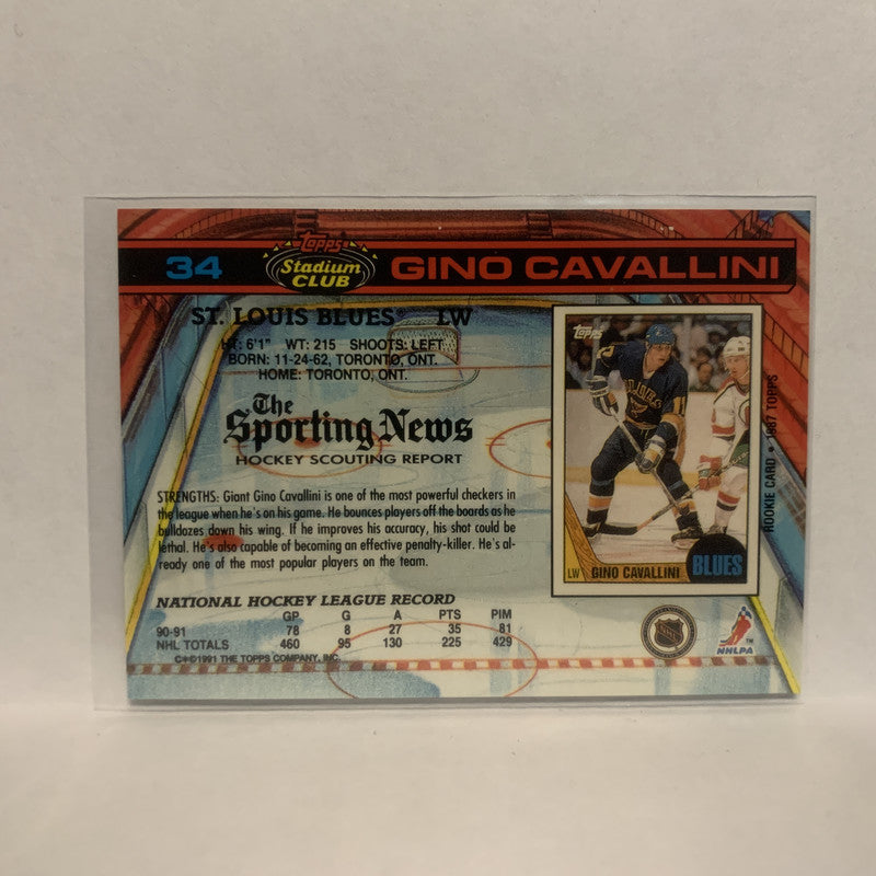 #34 Gino Cavallini St Louis Blues 1991-92 Topps Stadium Club Hockey Card LM