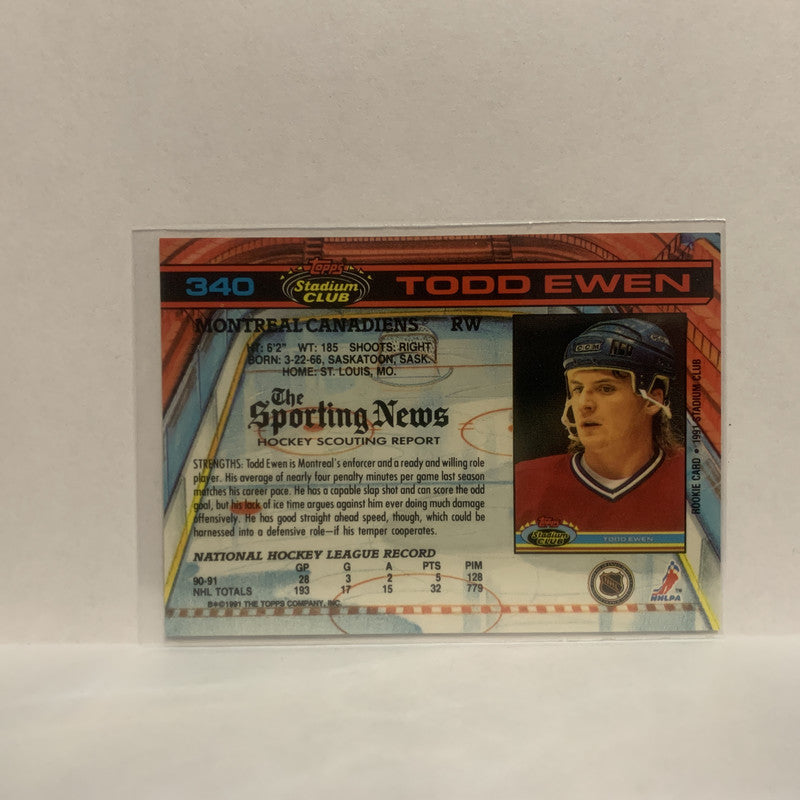 #340 Todd Ewen Montreal Canadiens 1991-92 Topps Stadium Club Hockey Card JU