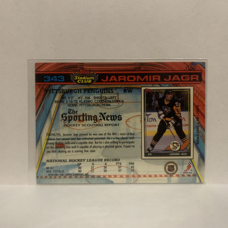 #343 Jaromir Jagr Pittsburgh Pengiuns 1991-92 Topps Stadium Club Hockey Card JU