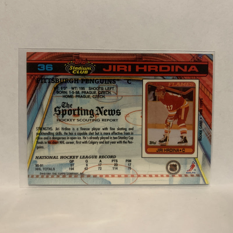 #36 Jiri Hrdina Pittsburgh Penguins 1991-92 Topps Stadium Club Hockey Card LM