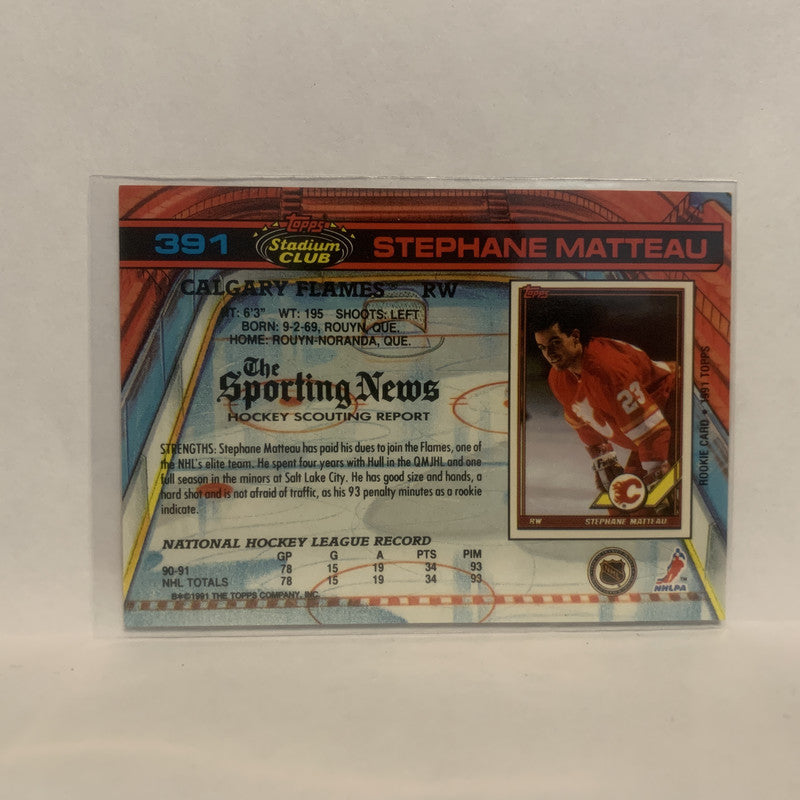 #391 Stephane Matteau Calgary Flames 1991-92 Topps Stadium Club Hockey Card LZ5