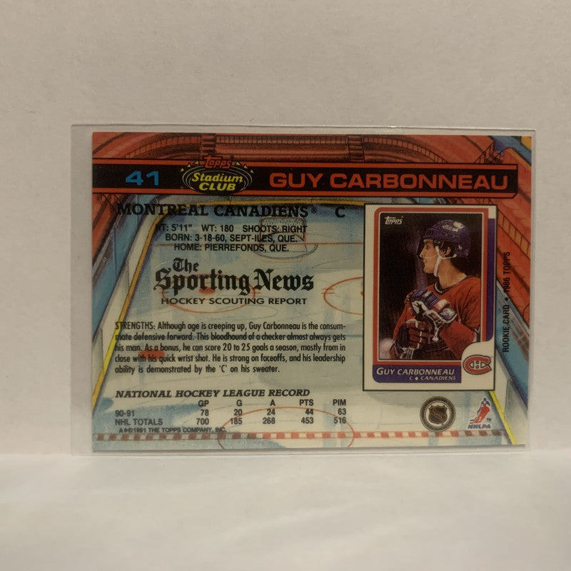 #41 Guy Carbonneau Montreal Canadiens 1991-92 Topps Stadium Club Hockey Card JX