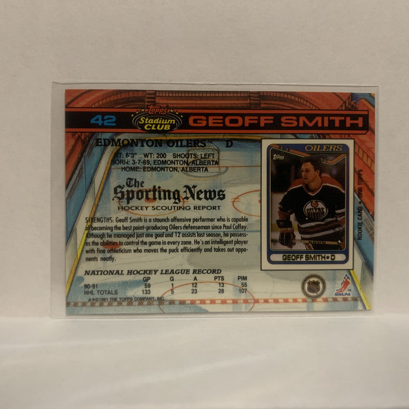 #42 Geoff Smith Edmonton Oilers 1991-92 Topps Stadium Club Hockey Card JX