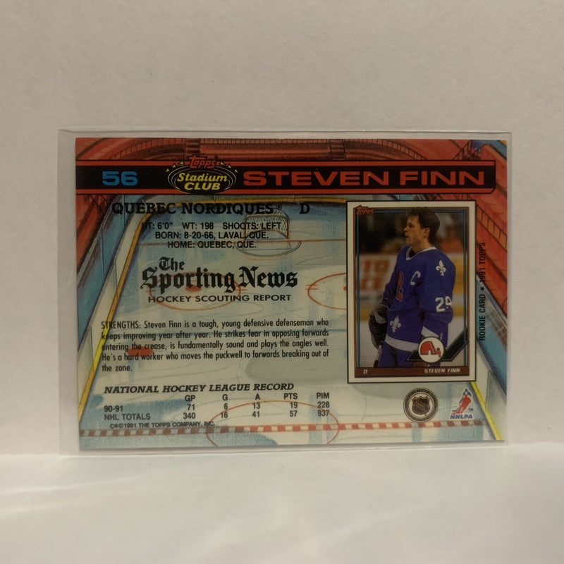 #56 Steven Finn Quebec Nordiques 1991-92 Topps Stadium Club Hockey Card JY