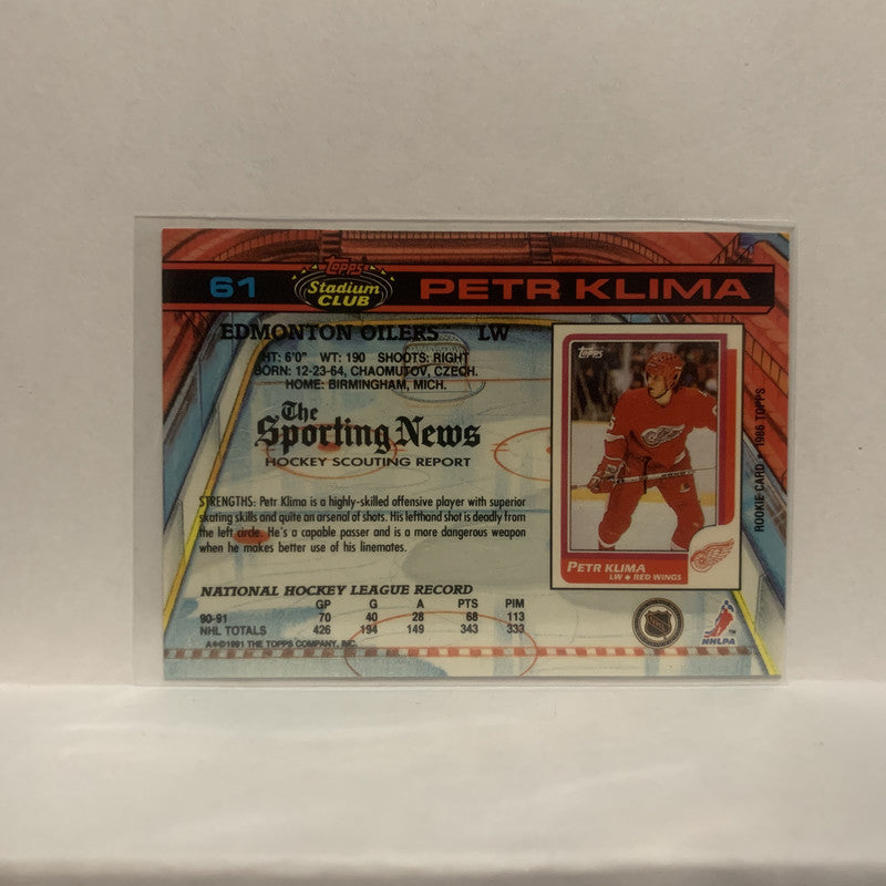 #61 Petr Klima Edmonton Oilers 1991-92 Topps Stadium Club Hockey Card JU