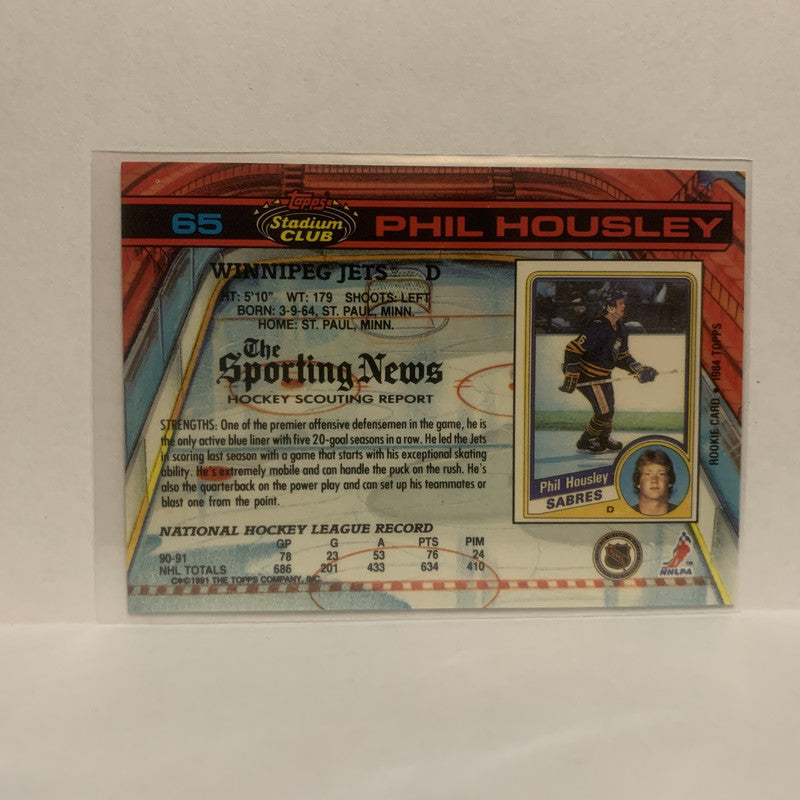 #65 Phil Housley Winnipeg Jets 1991-92 Topps Stadium Club Hockey Card JV