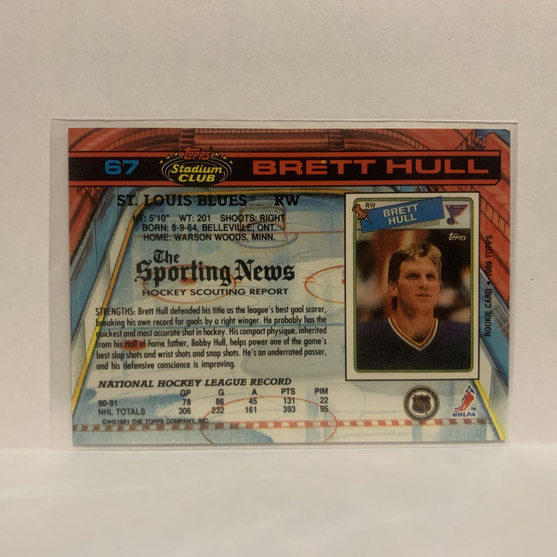 #67 Brett Hull St Louis Blues 1991-92 Topps Stadium Club Hockey Card JV