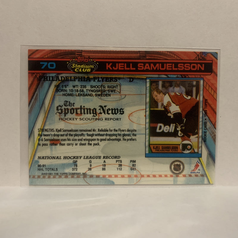 #70 Kjell samuelsson Philadelphia Flyers 1991-92 Topps Stadium Club Hockey Card JV
