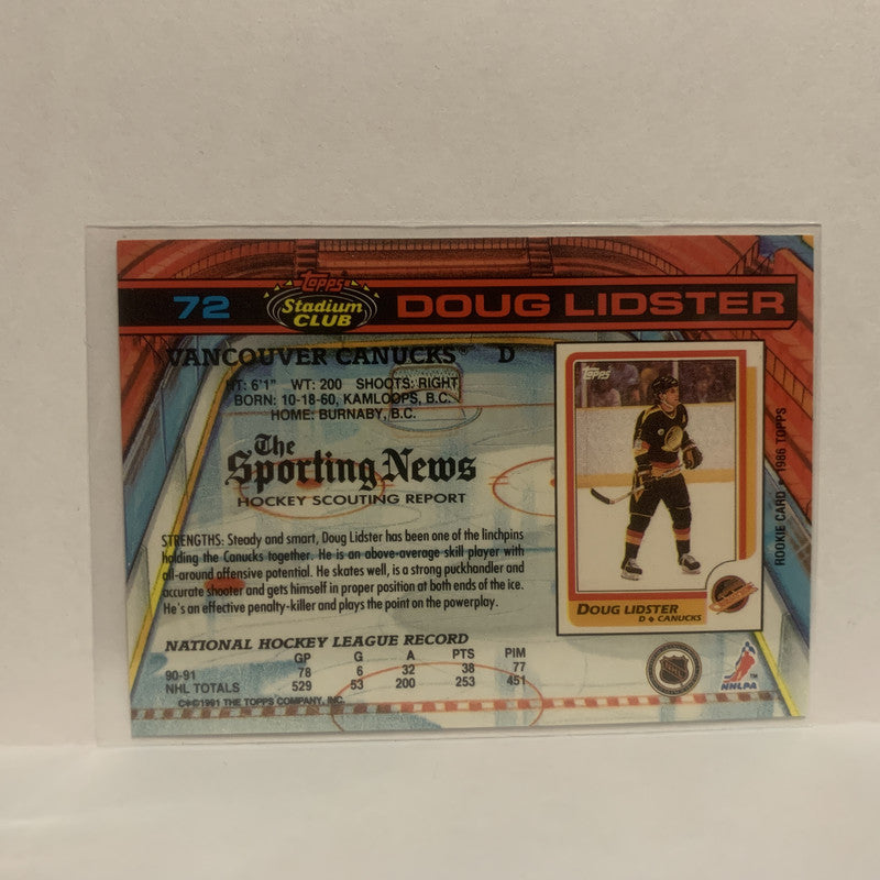 #72 Doug Lidster Vancouver Canucks 1991-92 Topps Stadium Club Hockey Card JV