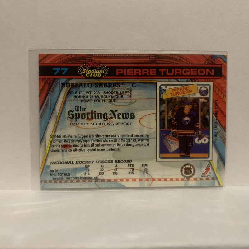 #77 Pierre Turgeon Buffalo Sabres 1991-92 Topps Stadium Club Hockey Card JY
