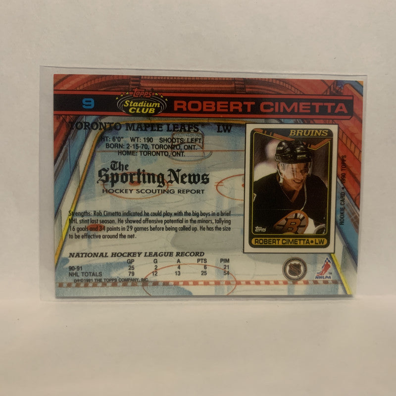 #9 Robert Cimetta Toronto Maple Leafs 1991-92 Topps Stadium Club Hockey Card LZ4