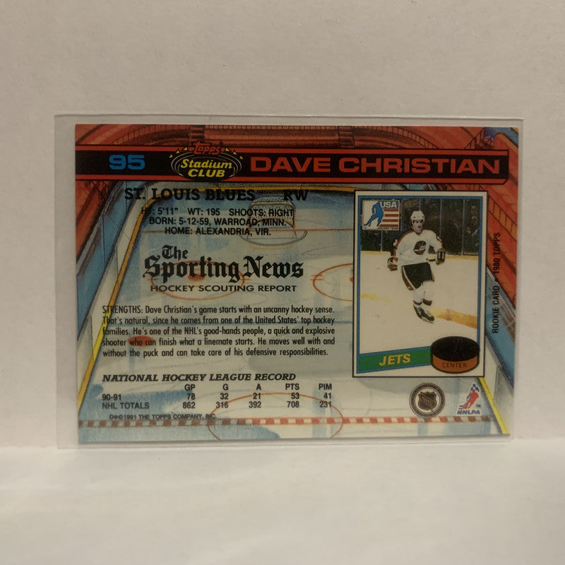 #95 Dave Christian St Louis Blues 1991-92 Topps Stadium Club Hockey Card JY