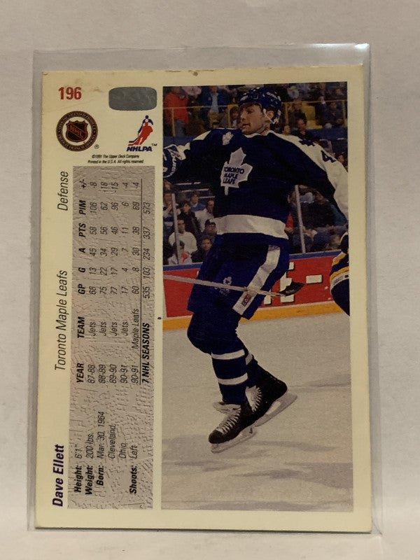 #196 Dave Ellett Toronto Maple Leafs 1991-92 Upper Deck Hockey Card NHL