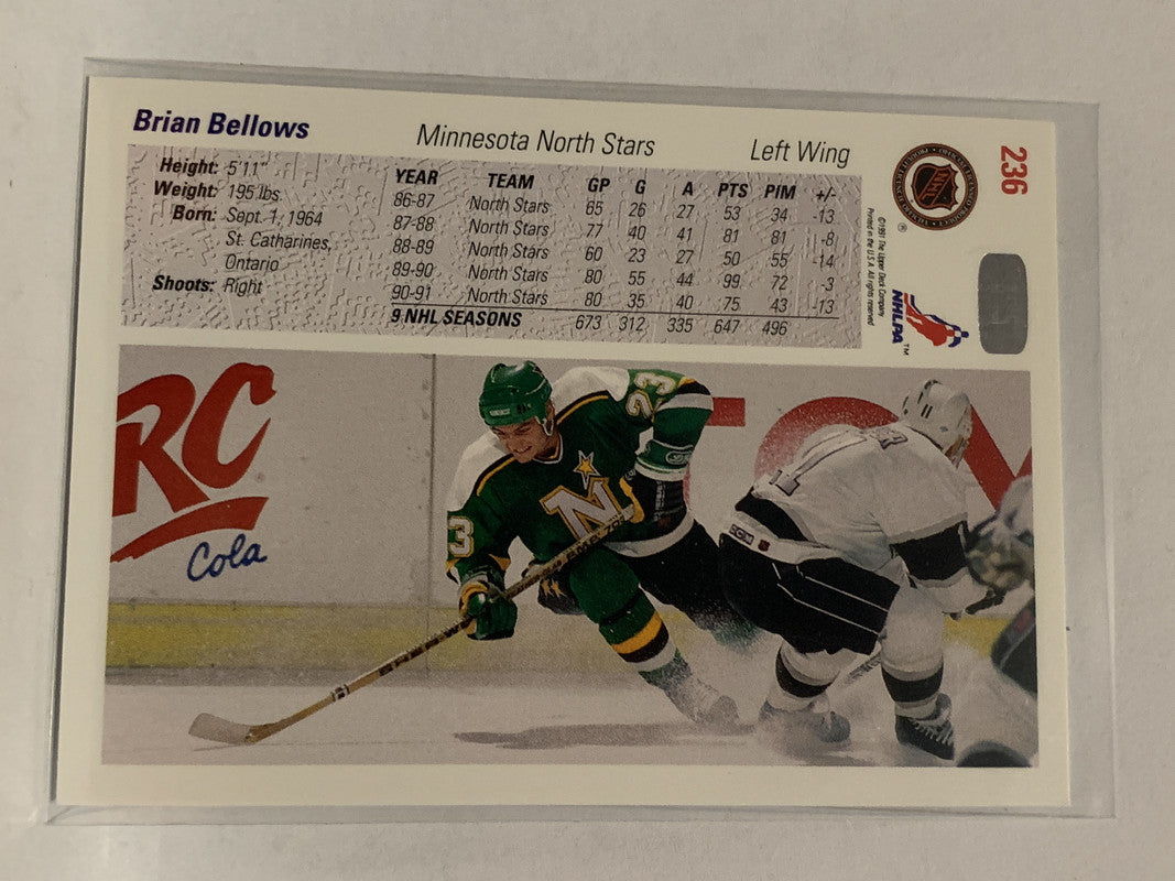 #236 Brian Bellows Minnesota North Stars 1991-92 Upper Deck Hockey Card NHL