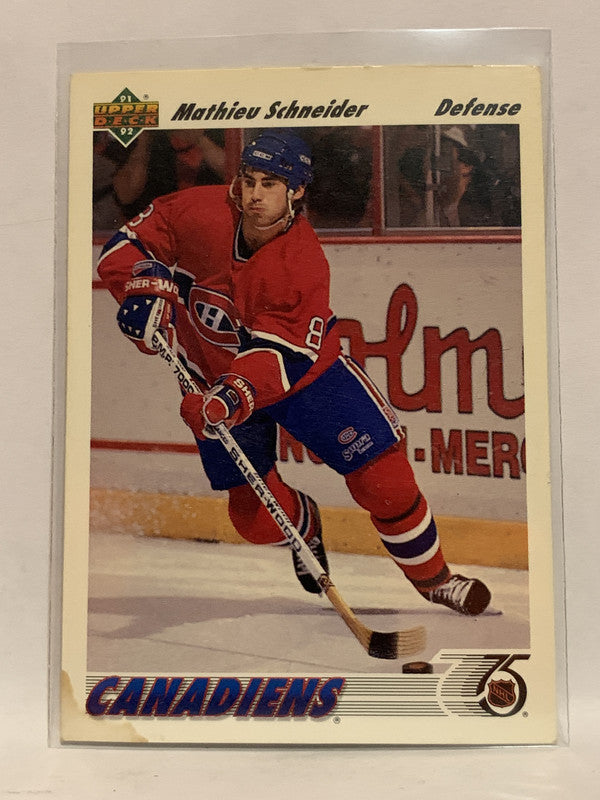 #328 Mathieu Schneider Montreal Canadiens 1991-92 Upper Deck Hockey Card NHL