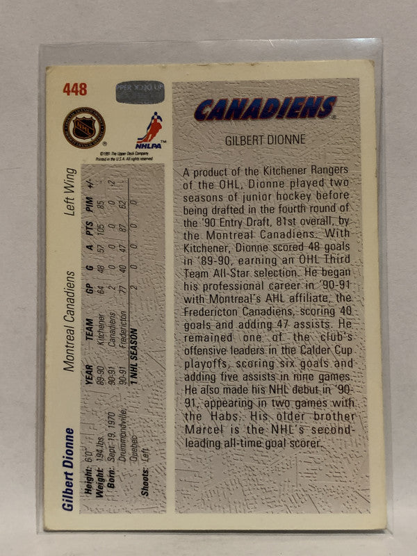 #448 Gilbert Dionne Montreal Canadiens 1991-92 Upper Deck Hockey Card NHL