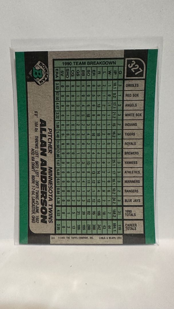 #327 Allan Anderson Minnesota Twins 1991 Bowman Baseball Card