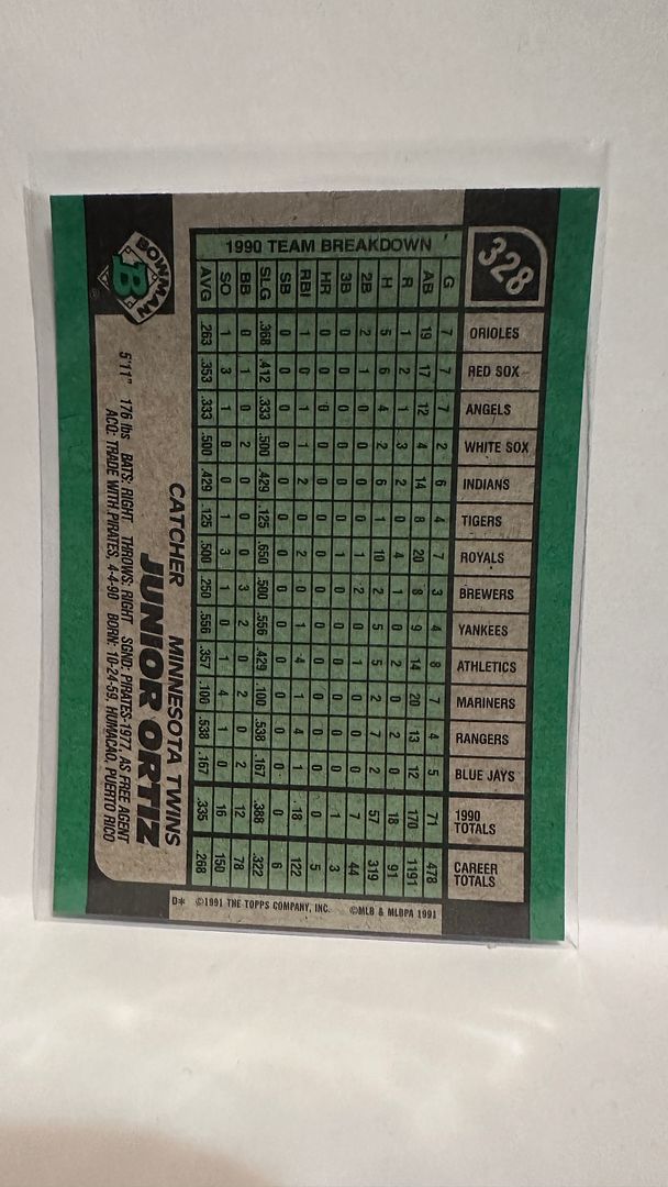 #328 Junior Ortiz Minnesota Twins 1991 Bowman Baseball Card